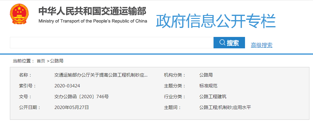 但是,今日機(jī)制砂行業(yè)迎來新的曙光,為解決河砂緊缺局面,交通運輸部發(fā)布《交通運輸部辦公廳關(guān)于提高公路工程機(jī)制砂應(yīng)用水平的通知》,對機(jī)制砂石質(zhì)量給出具體參考標(biāo)準(zhǔn),各地可結(jié)合實際情況在應(yīng)用過程中制定實施細(xì)則,不斷加強(qiáng)機(jī)制砂生產(chǎn)與應(yīng)用過程中的質(zhì)量管控,確保機(jī)制砂質(zhì)量。