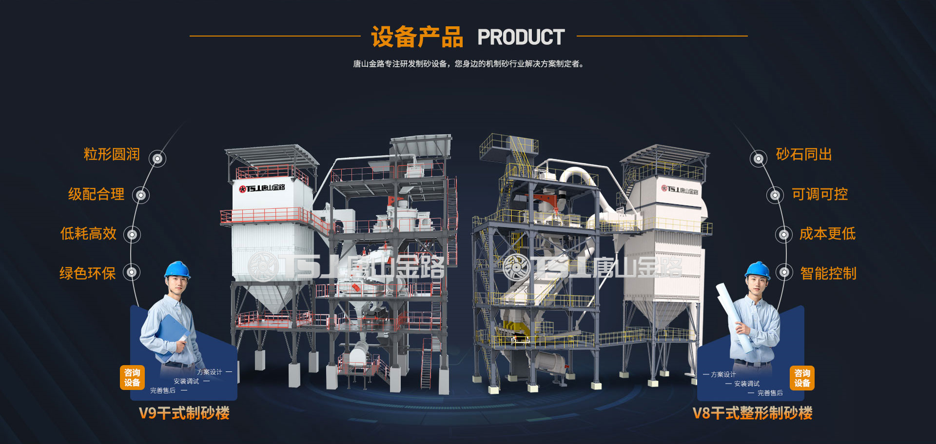 唐山金路作為一家集研發(fā)、生產(chǎn)、銷售、服務(wù)于一體的制砂機(jī)械設(shè)備企業(yè),一直致力于環(huán)保型破碎制砂設(shè)備的研發(fā)與生產(chǎn),現(xiàn)建有年產(chǎn)100萬噸的機(jī)制砂生產(chǎn)實(shí)踐基地。公司自主研發(fā)的V8干式整形制砂樓、V9干式制砂樓,具有綠色環(huán)保、能耗低產(chǎn)量高、智能控制等特點(diǎn),產(chǎn)出的機(jī)制砂級(jí)配合理、粒形圓潤,是制砂生產(chǎn)企業(yè)的理想產(chǎn)品。